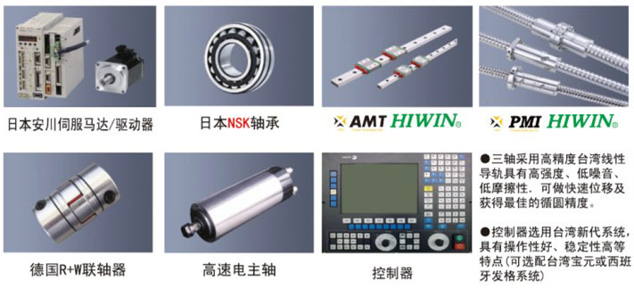 ●三軸采用高精度臺(tái)灣線性導(dǎo)軌具有高強(qiáng)度、低噪音、低摩擦性.可做快速位移及獲得最佳的循圓精度。